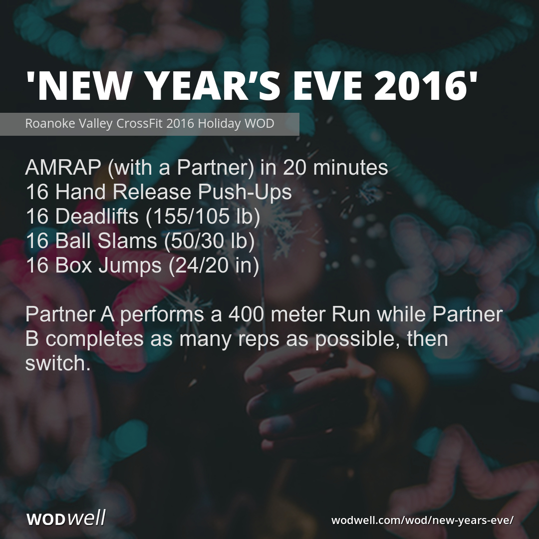 New Years Eve Eve WOD. Save Hartford- New Year Eves Meditation with Sahaja Yoga Meditation to your collection. 31 Open Gym Hours 900am-Noon Team of 2 For Time 12 rds 20 Double Unders 18 Alternating.